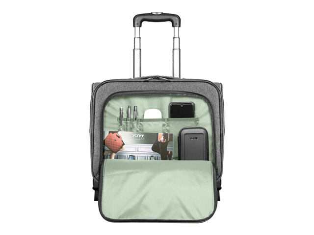 Eco & Beau ! Le trolley Yosemite 400708 de PORT Designs est conçu à partir de matériaux recyclés (PET et r-PET). Sa structure rigide assure une protection optimale contre les chocs. Profitez d'une grande capacité de rangement (25 L) comprenant un grand compartiment principal pour vos effets personnels et également une grande poche avant avec organisateur intégré pour tous vos accessoires (stylos, bloc-notes, etc.). Son compartiment rembourré pour ordinateur portable jusqu'à 15,6 - 16" et MacBook Pro 16" et sa pochette rembourrée dédiée pour tablette jusqu'à 12" protègent vos appareils et les sécurisent grâce à une bande Velcro. Idéal pour la mobilité, son format IATA est adapté aux cabines des principales compagnies aériennes.