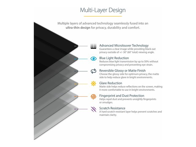 Écran Confidentialité Ordinateur - Filtre Ordinateur Réduction Lumière Bleue - Écrans Larges 16:9 Mat/Brilliant - +/- 30 Deg (PRIVACY-SCREEN-20M) - Filtre anti-indiscrétion - à double sens - amovible - module d'extension/adhésif - largeur de 20 pouces