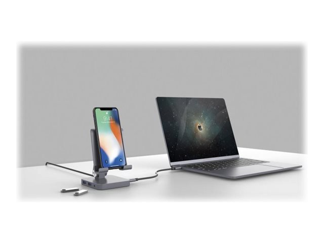 Station d'accueil et support USB-C pour PC portable, tablette et smartphone.