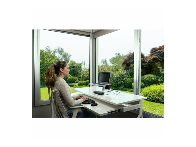 La coque extérieure de la SD4781P est composée à 73 % de matériaux recyclés post-consommation pour réduire l'impact environnemental. La station d'accueil prend en charge jusqu'à 2 écrans Ultra HD externes (4K à 60 Hz) et offre le choix entre une connexion HDMI 2.0 et DP++ 1.2. Le câble USB-C peut être verrouillé dans la station afin d'être sûr qu'il reste toujours en place même dans le cas de bureaux partagés.