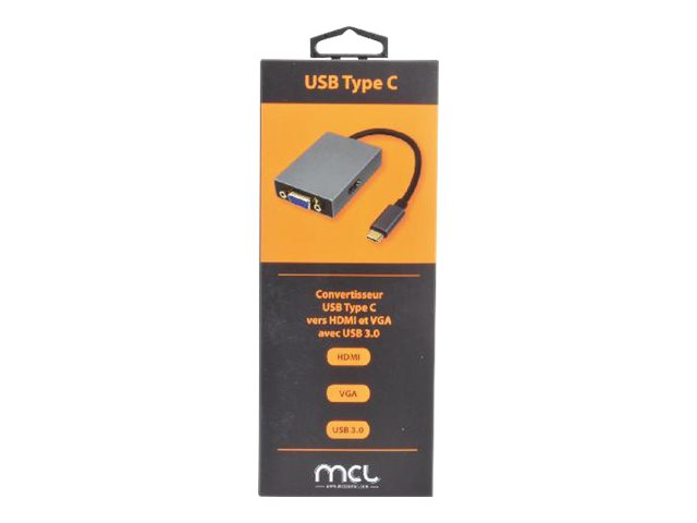 Grâce à ce convertisseur, vous pourrez raccorder votre ordinateur équipé d'une prise USB Type-C sur un écran HDMI ou VGA. Vous pourrez également brancher simultanément sur la prise USB 3.0, une souris, un clavier ou une clé USB.