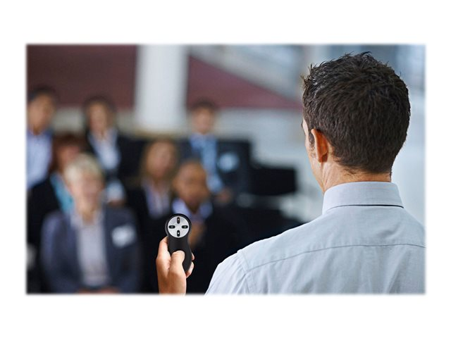 Présentez comme un pro avec la télécommande sans fil. Conçue pour les professionnels, cette télécommande vous permet de vous concentrer sur votre présentation grâce à une connexion sans fil fiable et des commandes naturelles. Grâce sa conception intuitive à quatre boutons, vous pouvez facilement faire défiler vos diapositives PowerPoint ou Keynote, mais aussi masquer votre écran et lancer un diaporama*. Le nano-récepteur sans fil se range facilement dans le compartiment de la batterie lorsqu'il n'est pas utilisé.