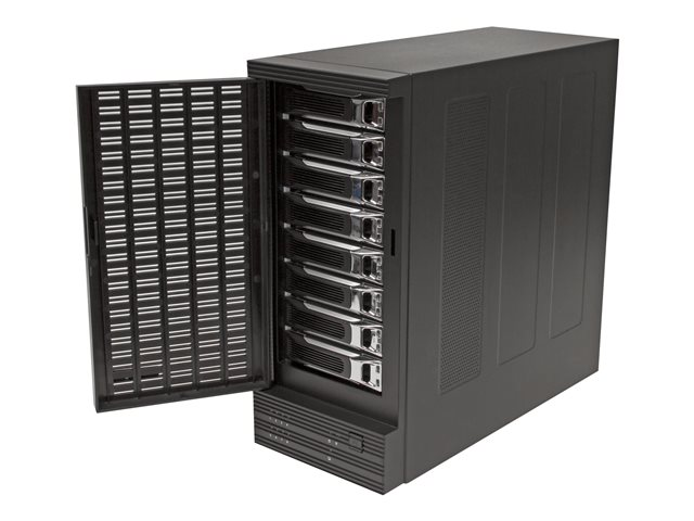 Le boîtier pour disque dur amovible à 8 baies S358BU33ERM vous permet d'accéder simultanément à 8 disques durs individuels 2,5 po ou 3,5 po au moyen d'un port unique eSATA ou USB.