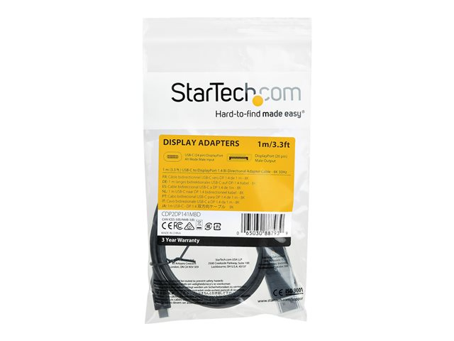 8K USB-C to DP Cable (CDP2DP141MBD) - Câble DisplayPort - 24 pin USB-C (M) pour DisplayPort (F) - USB 3.1 / Thunderbolt 3 / DisplayPort 1.4 - 1 m - actif, support pour 8K UHD (7680 x 4320) - noir