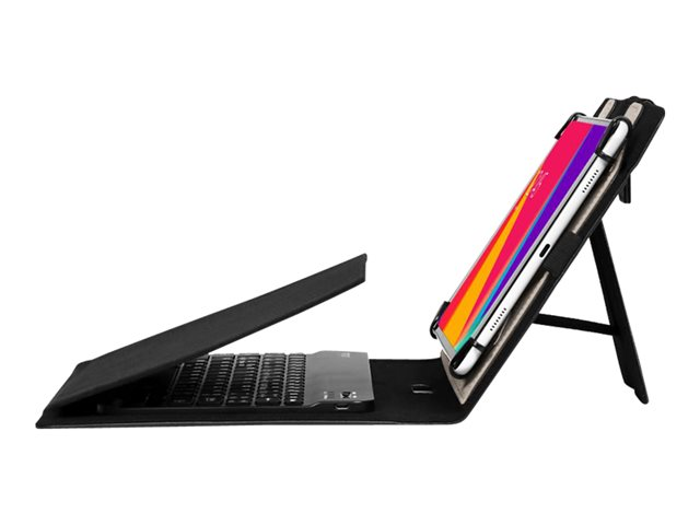 Muskoka est un étui universel avec clavier Bluetooth conçu pour habiller votre tablette de 9 à 11 pouces et offrir une protection optimale. Le système de crochet universel (UHS) breveté assure une compatibilité maximale et offre un maintien sécurisé. Le clavier universel Bluetooth est compatible avec iOS, Android & Windows (câble de chargement inclus). Le clavier est aimanté à l'étui pour une saisie confortable et un rabat intérieur protège l'écran du contact du clavier lorsqu'il est fermé. Le rabat pliable de l'appareil photo permet de prendre des photos. La fermeture magnétique maintiendra le portefeuille fermé de manière sécurisée lors de vos déplacements.