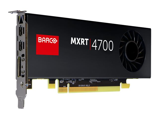 Description du produit Barco MXRT-4700 - carte graphique - 4 Go Type de périphérique Carte graphique Type de bus PCI Express 3.0 x8 Mémoire 4 Go GDDR5 Processeurs de flux 512 Interface mémoire 128-bit Détails d'interface DisplayPort