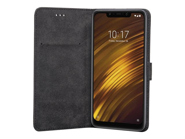 Étui à rabat pour téléphone portable - cuir doux - noir