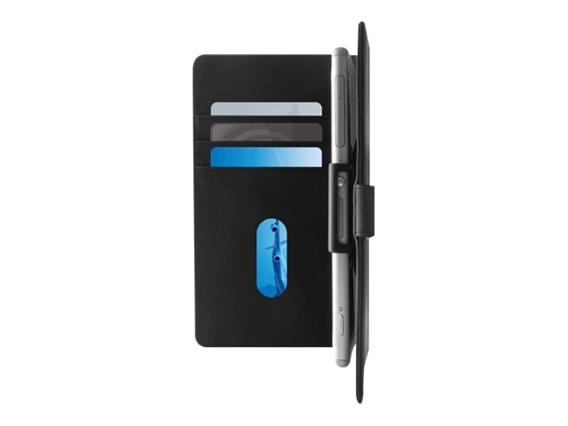 La protection universelle "Smart Wallet" pour smartphones possède des ailettes réglables qui permet de s'adapter parfaitement à de nombreux smartphones. Son système coulissant permet de faire glisser le smartphone vers le haut ou le bas pour laisser libre accès à la caméra. Fabriquée en éco cuir, la protection possède un rabat magnétique frontal.