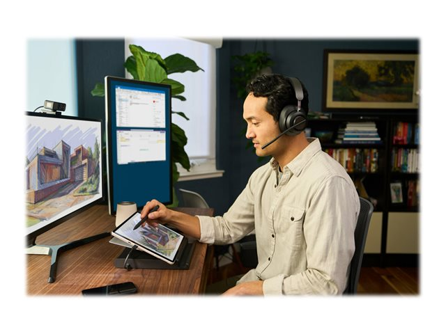 Le micro-casque Bluetooth H3000 de Kensington offre une expérience immersive et subtile, la liberté de mouvement du sans fil et une technologie audio supérieure. Les écouteurs à mémoire de forme avec gel refroidissant recouverts d'un tissu à transfert de chaleur offrent un confort longue durée. Les témoins lumineux confirment le statut et réduisent les distractions. De plus, les commandes de musique avec technologie de détection d'appels simplifient les transitions et l'effet vocal (Sidetone) optimise les appels. Les haut-parleurs dynamiques de 40 mm en néodyme vous offrent une expérience audio de pointe pour les appels et la musique. La batterie longue durée avec technologie de chargement rapide vous permet d'utiliser le casque pendant qu'il se recharge. Le micro-casque H3000 fait partie de l'écosystème de visioconférence professionnelle de Kensington. Vous bénéficiez ainsi d'une expérience intégrée qui vous permet de consacrer plus de temps à accroître votre productivité.