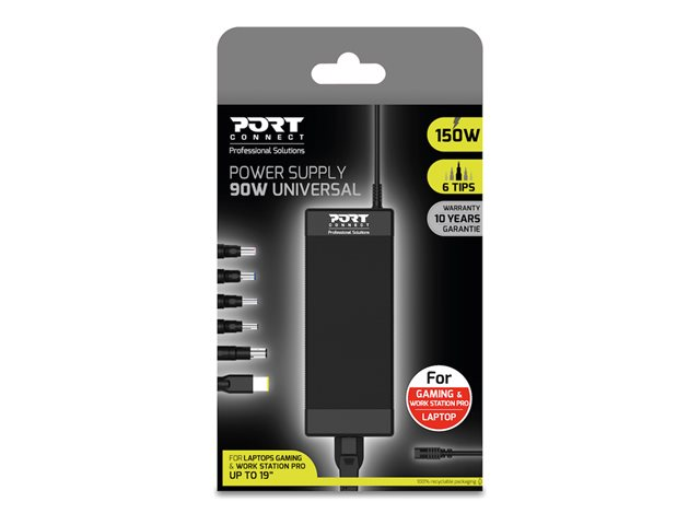 Alimentation universelle 150 Watt pour ordinateur portable gaming & station de travail professionnelle. 6 embouts universels compatibles avec : Lenovo, HP, Acer, Asus, Compaq, MSI, Packard Bell, eMachines, Gateway, Clevo. Adaptable à la puissance de votre machine jusqu'à 150 W : fournir jusqu'à 150 W avec une protection contre les- survoltages.