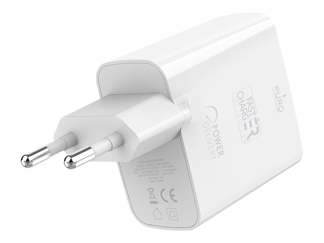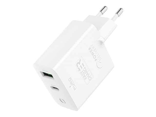 Description du produit Puro adaptateur secteur - USB, 24 pin USB-C - 32 Watt Type de Produit Adaptateur secteur Couleur Blanc Type de prise Total 2: USB, 24 pin USB-C Tension requise CA 110-240 V (50 - 60 Hz) Tension fournie 5 / 9 / 12 V Courant électrique max. 3 A Technologie de charge rapide Fast Charge, Power Delivery Alimentation fournie 32 Watt Détails du dispositif d'alimentation - 24 pin USB-C with Power Delivery - 5 V - 20 W - 3 A