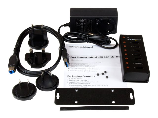 Concentrateur USB à montage mural / sur bureau avec boîtier métallique - Hub USB 3.0 portable - Concentrateur (hub) - 7 x SuperSpeed USB 3.0 - de bureau, fixation murale - pour P/N: BNDTBUSB3142, PEXUS313AC2V, PEXUSB311A1E, PEXUSB312A2, PEXUSB314A2V, PEXUSB314A2V2