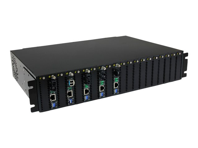 Pour plus de polyvalence, ce convertisseur Ethernet fibre optique permet un fonctionnement autonome ou une installation dans le châssis monté en rack 2U à 20 fentes (ETCHS2U).