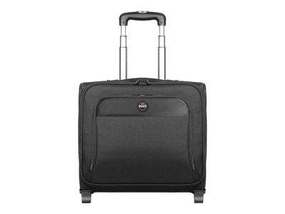 Trolley pour ordinateur portable avec compartiment pour ordinateur portable 15,6" et tablette 10''. Idéal pour les déplacements avec son compartiment pour vêtements et les articles personnels. Poche avant organiser pour stylos et divers accessoires. La structure rigide du trolley protège efficacement son contenu des chocs et chutes. Transport facilité avec son bras extensible en aluminium et poignée à main intégrée. Format IATA adapté aux transports aériens.