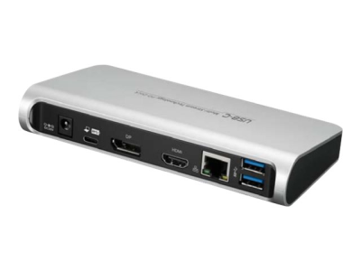 Cette station d'accueil permet d'augmenter la connectivité de votre ordinateur ou ultra-book. En effet, grâce à cette station d'accueil USB type C, votre ordinateur sera équipé de plusieurs ports USB, d'un port réseau RJ45 Ethernet et d'une prise pour haut-parleur/micro. De plus les ports USB type C de cette station d'accueil, permettent de recharger votre ordinateur qui y est connecté. Avec les ports USB 3.0, vous pourrez y connecter vos périphériques USB et profiter d'une transmission des données "Super Speed". Les ports DisplayPort et HDMI, permettent de connecter un écran DisplayPort ou HDMI supplémentaire afin de pouvoir profiter du mode d'affichage étendu.