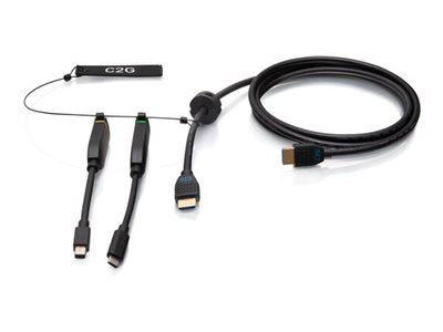 C2G 10ft (3m) 4K HDMI Premium Cable and Dongle Adapter Ring with Color Coded Mini DisplayPort and USB-C - Kit d'adaptateur vidéo - noir - contacts flashés d'or, support pour 4K60Hz, support 4K 30 Hz (mDP)
