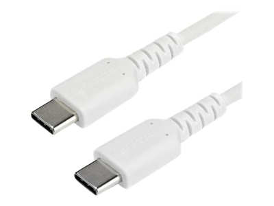 StarTech.com Câble de Chargement USB-C 1m - Cordon de Chargement USB 2.0 Type C vers USB-C pour PC Portable - Gaine TPE Fibre Aramide M/M 60W Blanc - Samsung S10 S20 iPad Pro MS Surface (RUSB2CC1MW) - Câble USB - 24 pin USB-C (M) droit pour 24 pin USB-C (M) droit - Thunderbolt 3 / USB 2.0 - 1 m - blanc