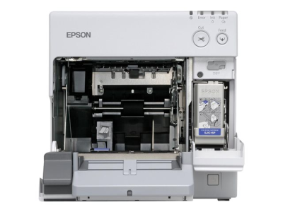 L'Epson TM-C3400BK est une imprimante d'étiquettes à jet d'encre haute performance permettant d'imprimer des codes-barres, des fiches d'identification, des étiquettes. L'imprimante TM-C3400BK a été conçue pour être peu encombrante, mais également pour pouvoir s'installer sur un comptoir ou sous un bureau. À cet effet, tous les éléments fonctionnels, y compris la cartouche d'encre haute capacité et les rouleaux de papier, sont accessibles et remplaçables depuis l'avant de l'appareil.