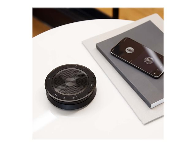Speakerphone sans fil Bluetooth , épuré et portable aux performances audio exceptionnelles. Participez instantanément aux réunions et profitez d'un son cristallin des deux côtés de la ligne. Trois micros à formation automatique de faisceaux isolent les voix de la réverbération et du bruit ambiant dans la pièce, pour une expérience audio riche et dynamique.
